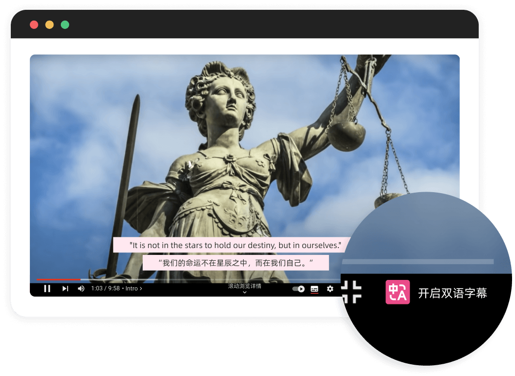 Immersive Translate는 60개 이상의 주요 외국 비디오 사이트에서 이중 언어 실시간 자막 지원을 최초로 제공했습니다. 이중 언어 자막을 통해 비디오 내용을 완전히 이해하고 시청하는 동안 자연스럽게 외국어를 배울 수 있습니다. 모국어로 된 자막과 결합된 진정한 외국어 오디오는 듣기, 말하기, 읽기, 쓰기 능력을 미묘하게 향상시키는 데 도움이 됩니다.