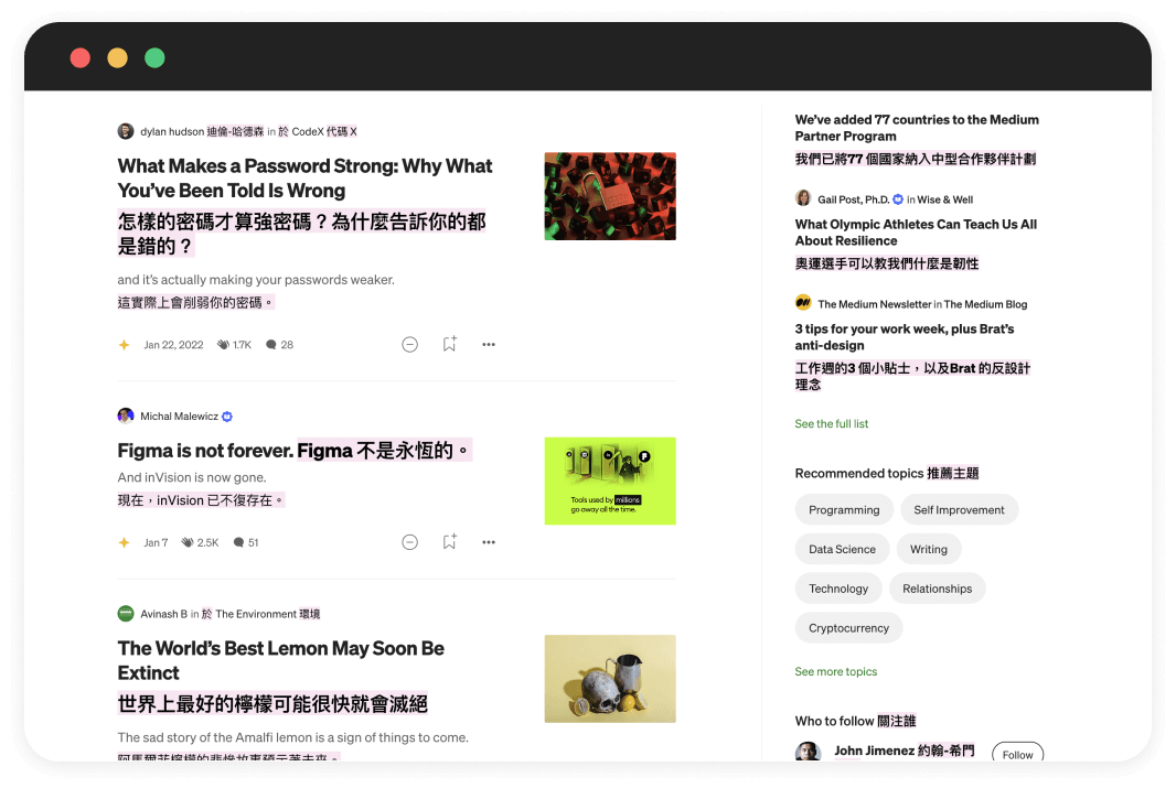使用“沉浸式翻譯”,輕鬆瀏覽訊息